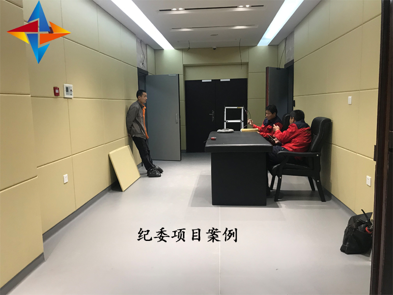 紀(jì)委審訊室安裝方法:劃線定位→基層板清潔處理→地腳線安裝→防撞墻板底座安裝→刷膠粘防撞墻板→壓邊條安裝→吸音板安裝。
