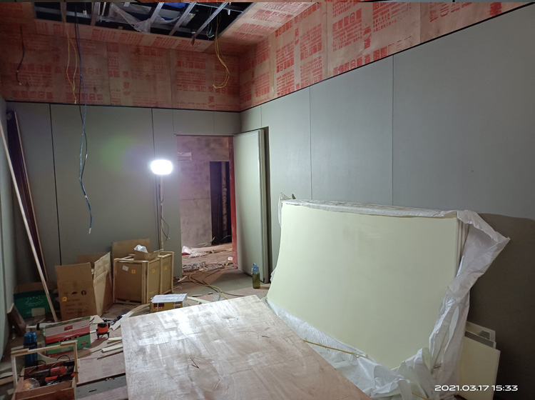 按照設(shè)計(jì)要求,材料的厚度為20mm、30mm,規(guī)格為1250*2450毫米,墻面高度一般為3米,0.6米做吸音板,顏色分為淺灰或米黃,防線和定位精準(zhǔn),需在談話室墻面輕鋼龍骨做好木工底板用于安裝,材料為環(huán)保E0級(jí),且甲醛濃度小于0.1毫克標(biāo)準(zhǔn),符合設(shè)計(jì)要求及現(xiàn)行產(chǎn)品技術(shù)規(guī)范。輔助材料包括中線收邊條,PVC卡扣底座以及門邊線,牢固連接每個(gè)相連點(diǎn)的縫隙,嵌縫小于10毫米范圍。