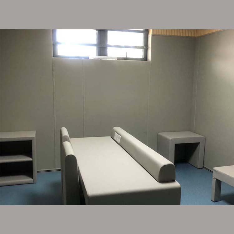 監(jiān)察委留置室防撞軟包墻面規(guī)范及建設標準,其材料須是防撞行業(yè)前沿產品且具備防撞、阻燃、防水、環(huán)保、防潮、防撕拉摳扯,密度高且比厚度較低,同比2-3倍厚度的海綿壓縮后同等密度,實現(xiàn)2.5/2公分厚度的高密度防撞棉的防撞效果與10公分海綿的防撞性能同等甚至更佳。同時富有彈性、復原性,而且易切割、施工簡便,新型環(huán)保納米棉皮革軟包是由高分子材料聚合而成,用皮革做面飾,皮革防水耐刮,后背阻燃鋁箔。一般標準規(guī)格為1250*2450mm,一般紀檢委墻面防撞軟包厚度做20mm,25mm。