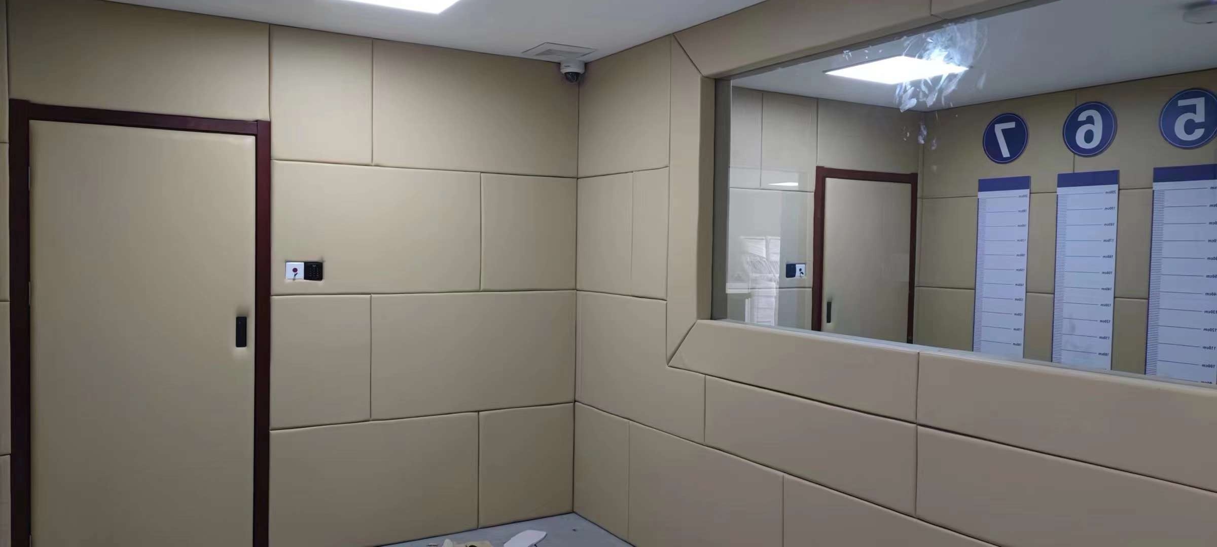3.施工后,查看軟包墻板邊緣是否有縫隙,如縫隙較大可補(bǔ)膠處理,留置室四周陰陽(yáng)角施工在軟包背面基材開直角槽,小木條加F30射釘固定墻板,待拆下無(wú)脫落現(xiàn)象即可用硅膠中線條封邊。