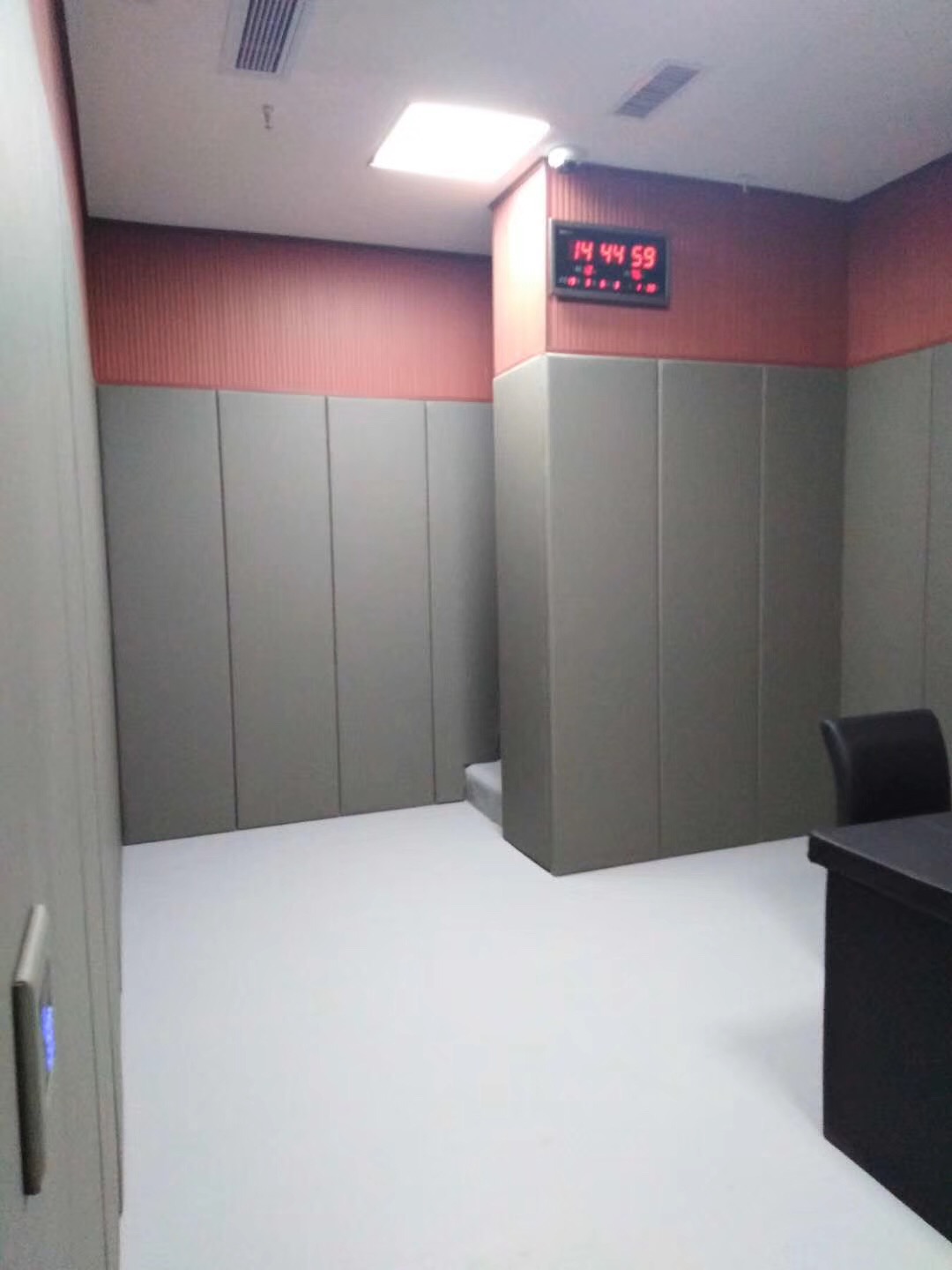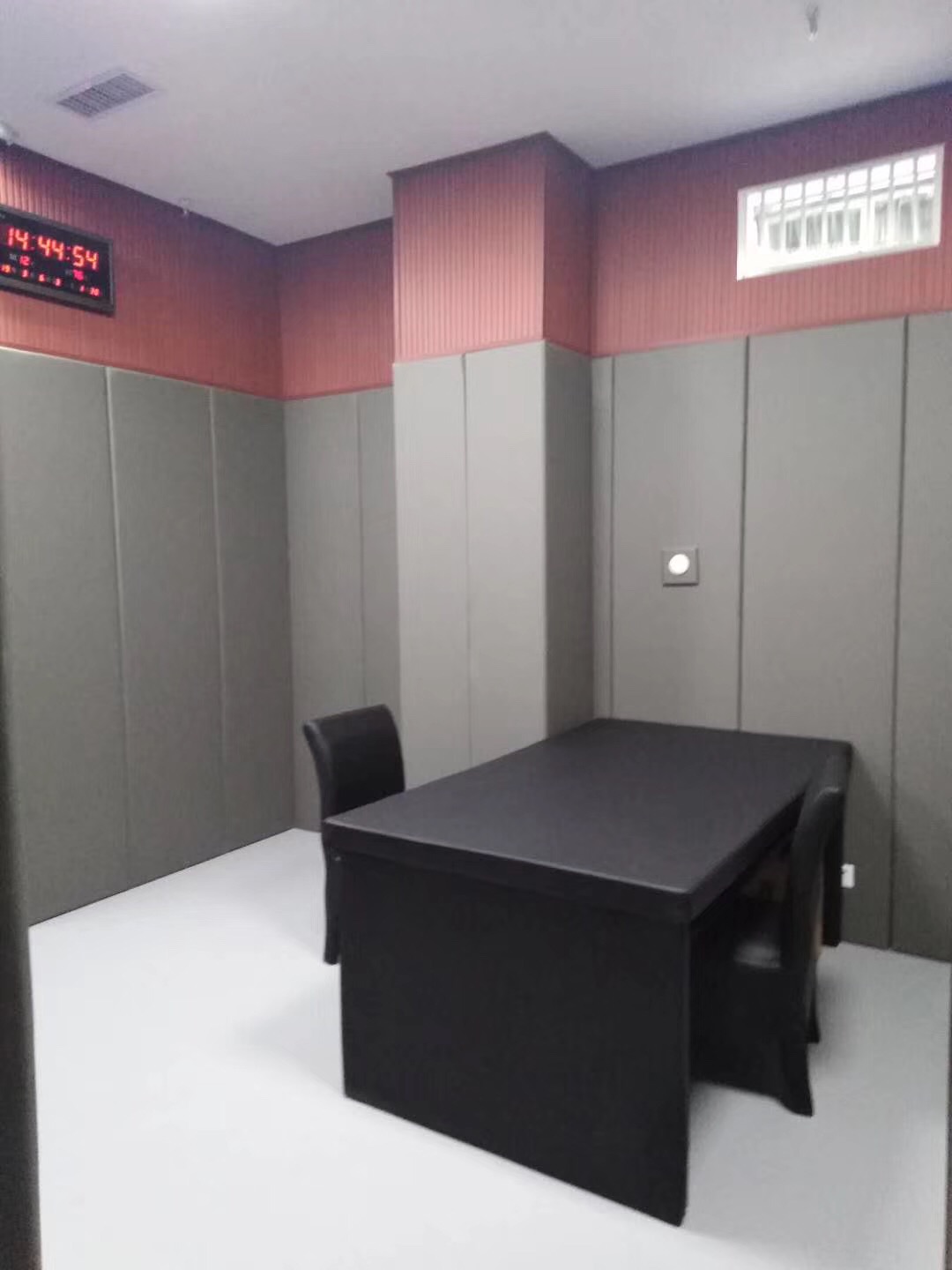 隨著社會的發(fā)展人們的需求,人身安全與秘密極其重要,審訊室在詢問犯人時防止外面的人聽到,也防止犯人自殺及自殘自傷的行為,帶來的不必要的麻煩,采用防撞材料體現(xiàn)對于犯人的人愛護,詢問隱私的一種保護(隔音,防止聲音外傳),也防止噪音給審訊帶來的干擾。